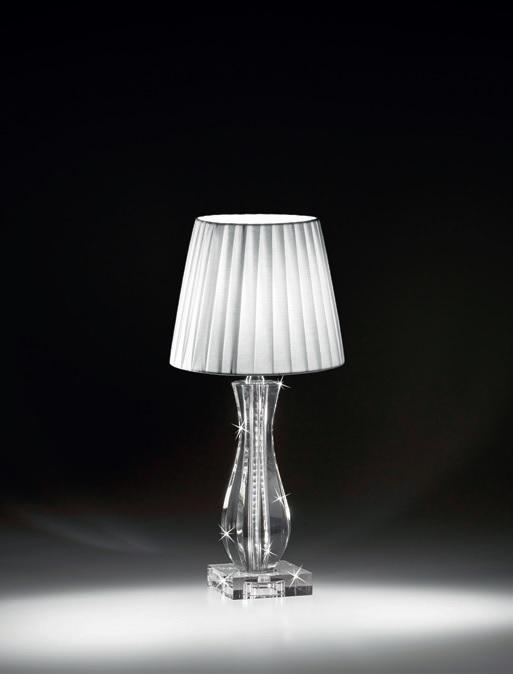 lumetto in cristallo con paralume in tessuto bianco tondo H 46 cm