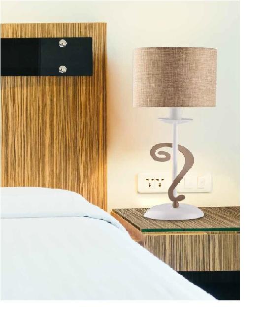 lumetto in ferro battuto laccato bianco con inserti in metallo tagliati al laser color marrone e tortora