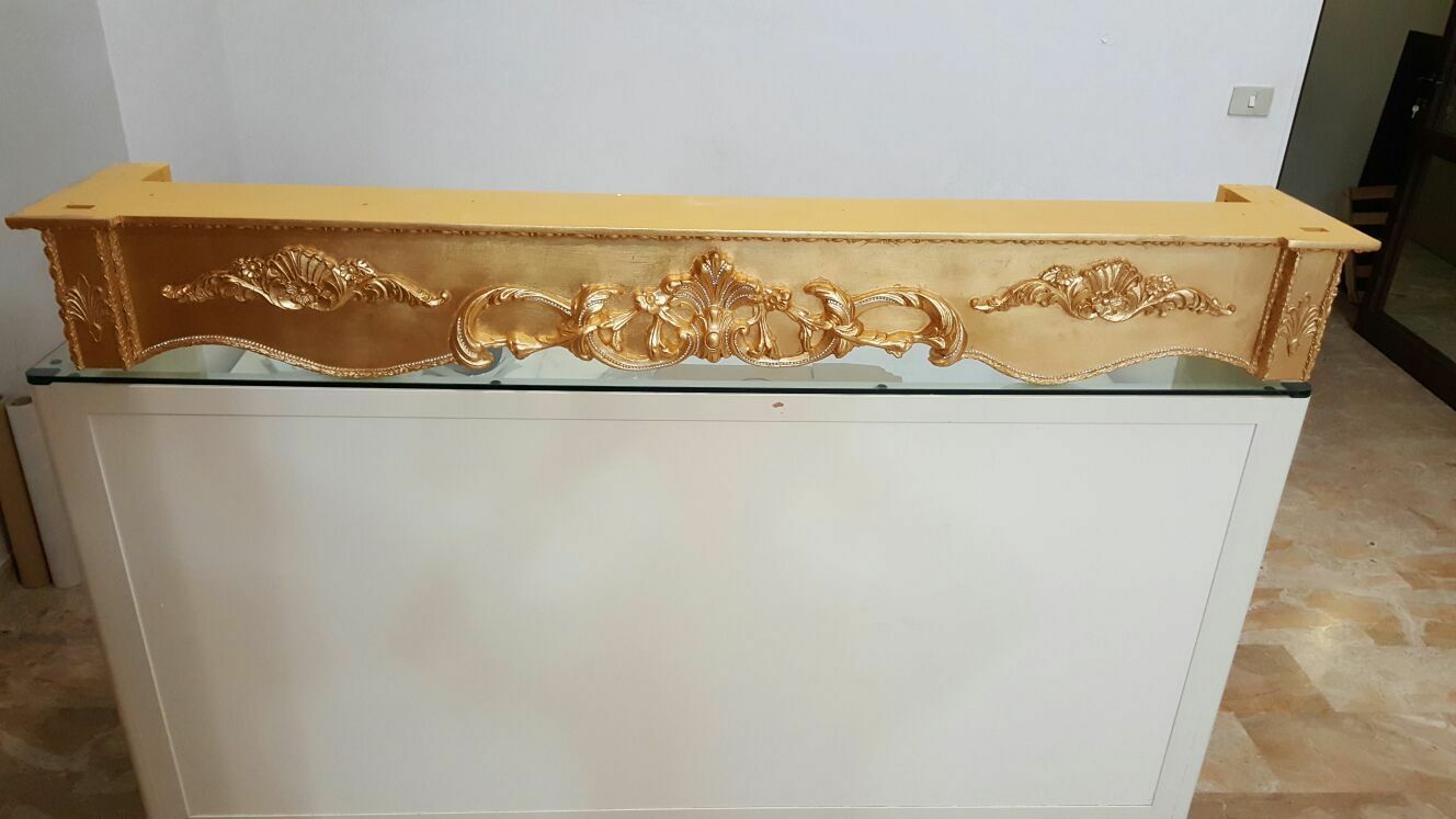 MANTOVANA PER TENDA DOPPIO CARRELLO IN LEGNO FOGLIA ORO CRISTALLI STRASS
