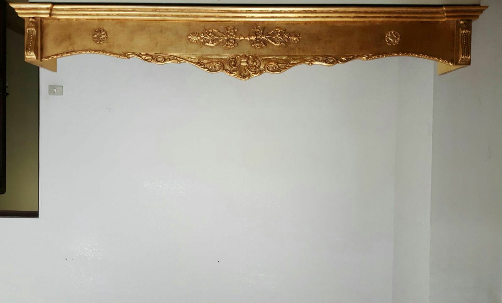 MANTOVANA PER TENDA DOPPIO CARRELLO IN LEGNO FOGLIA ORO CRISTALLI STRASS
