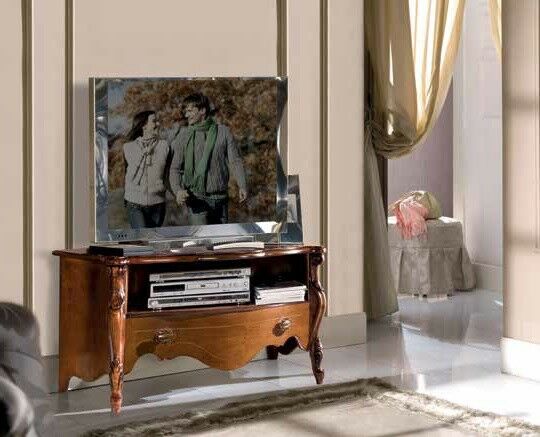 MOBILE BASSO PORTA TV IN LEGNO NOCE E ORO