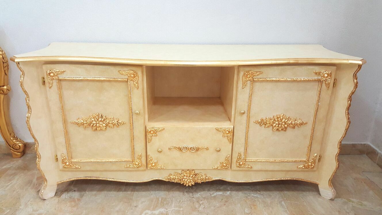 MOBILE PORTA TV LEGNO DECORO PANNA E ORO ARREDO CASA SALOTTO SOGGIORNO