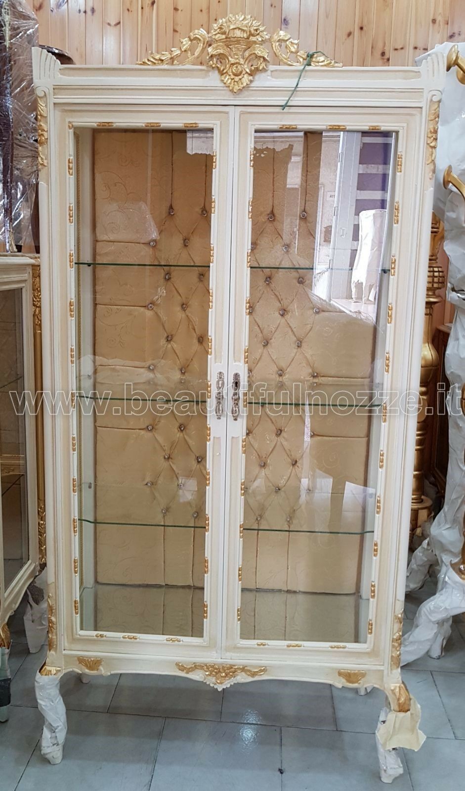 MOBILE VETRINA 2 ANTE IN LEGNO AVORIO E FOGLIA ORO
