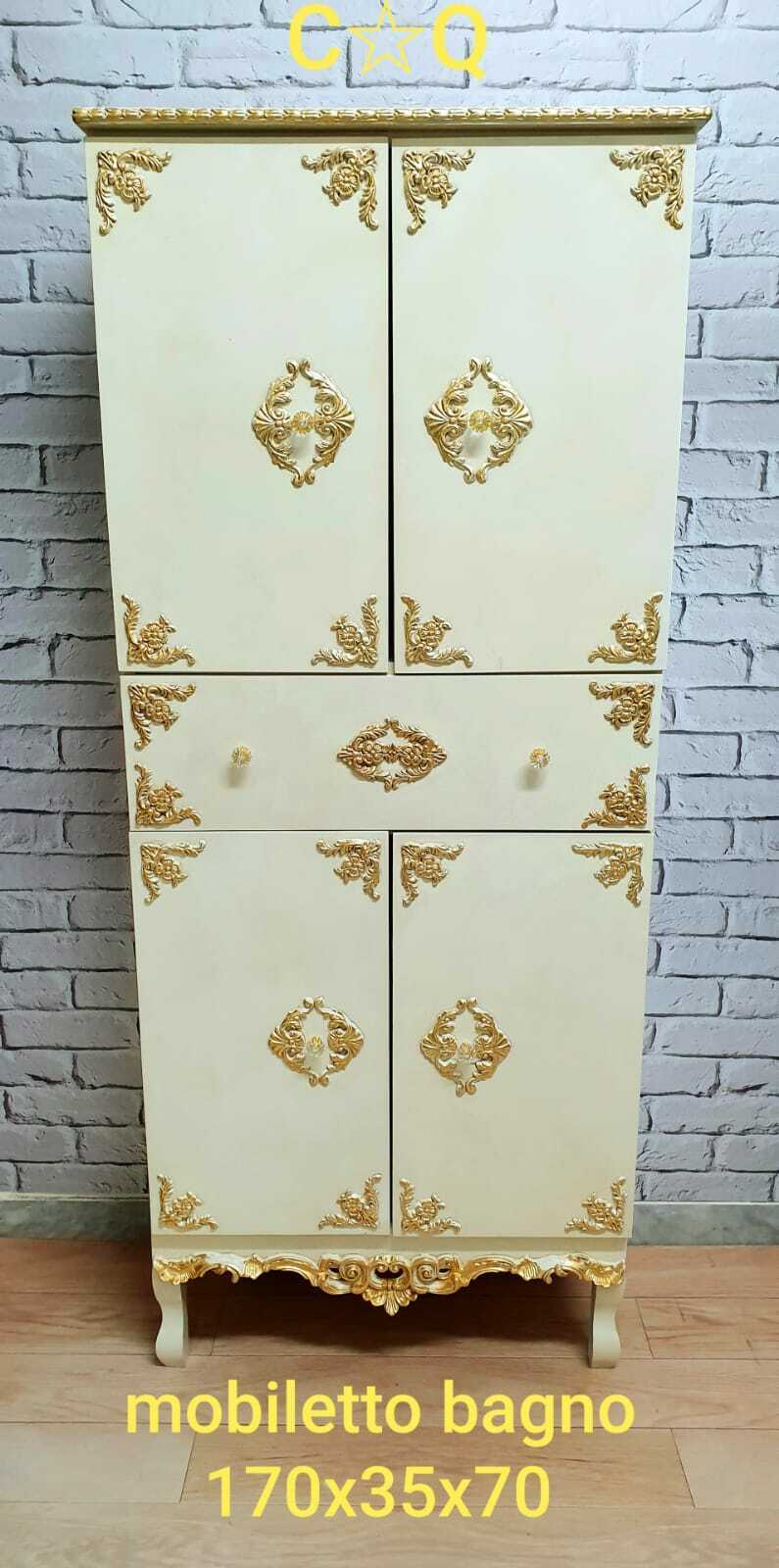 MOBILETTO BAGNO IN LEGNO AVORIO E FOGLIA ORO