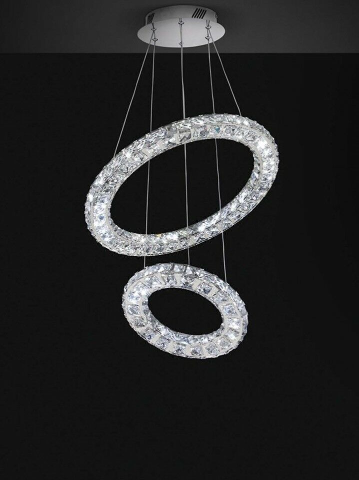 NORA3 SOSPENSIONE ANELLO MEDIO IN ACCIAIO INOX E MATTONELLE IN CRISTALLO A LED
