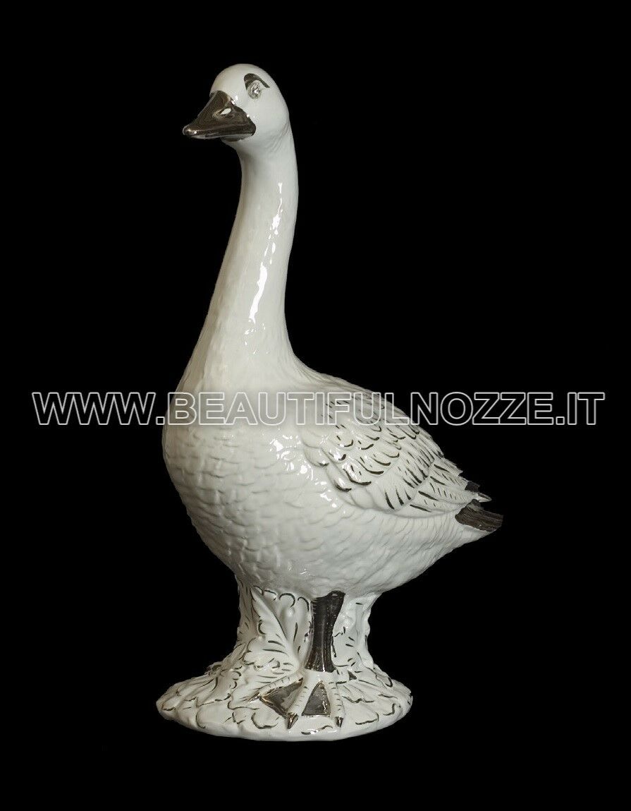 OCA GRANDE IN CERAMICA BIANCO PLATINO CON CRISTALLI SWAROVSKI ANIMALI