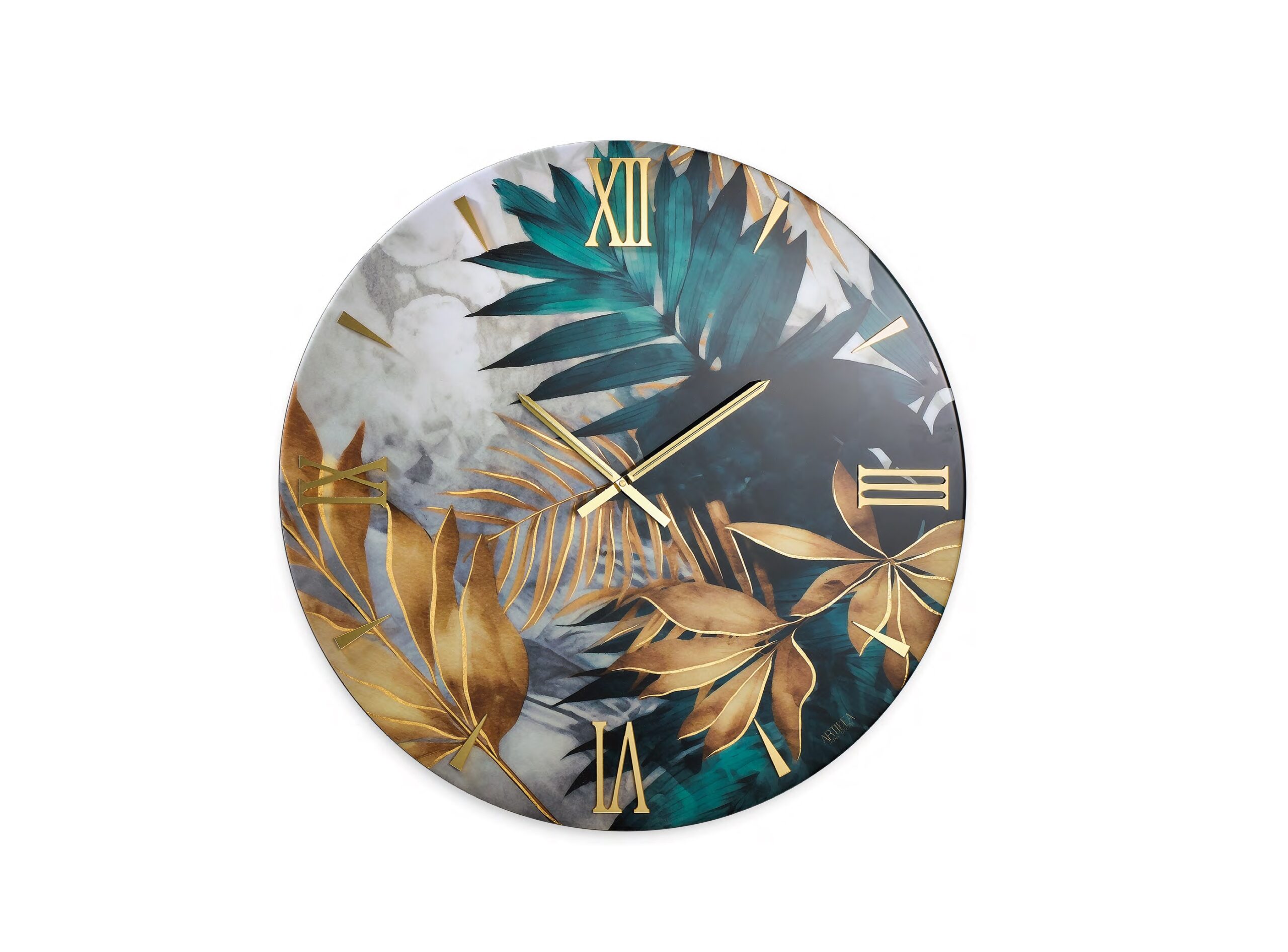 Orologio moderno con foglie verdi e oro numeri oro dec. TOGO varie misure 40-60-80-100 cm