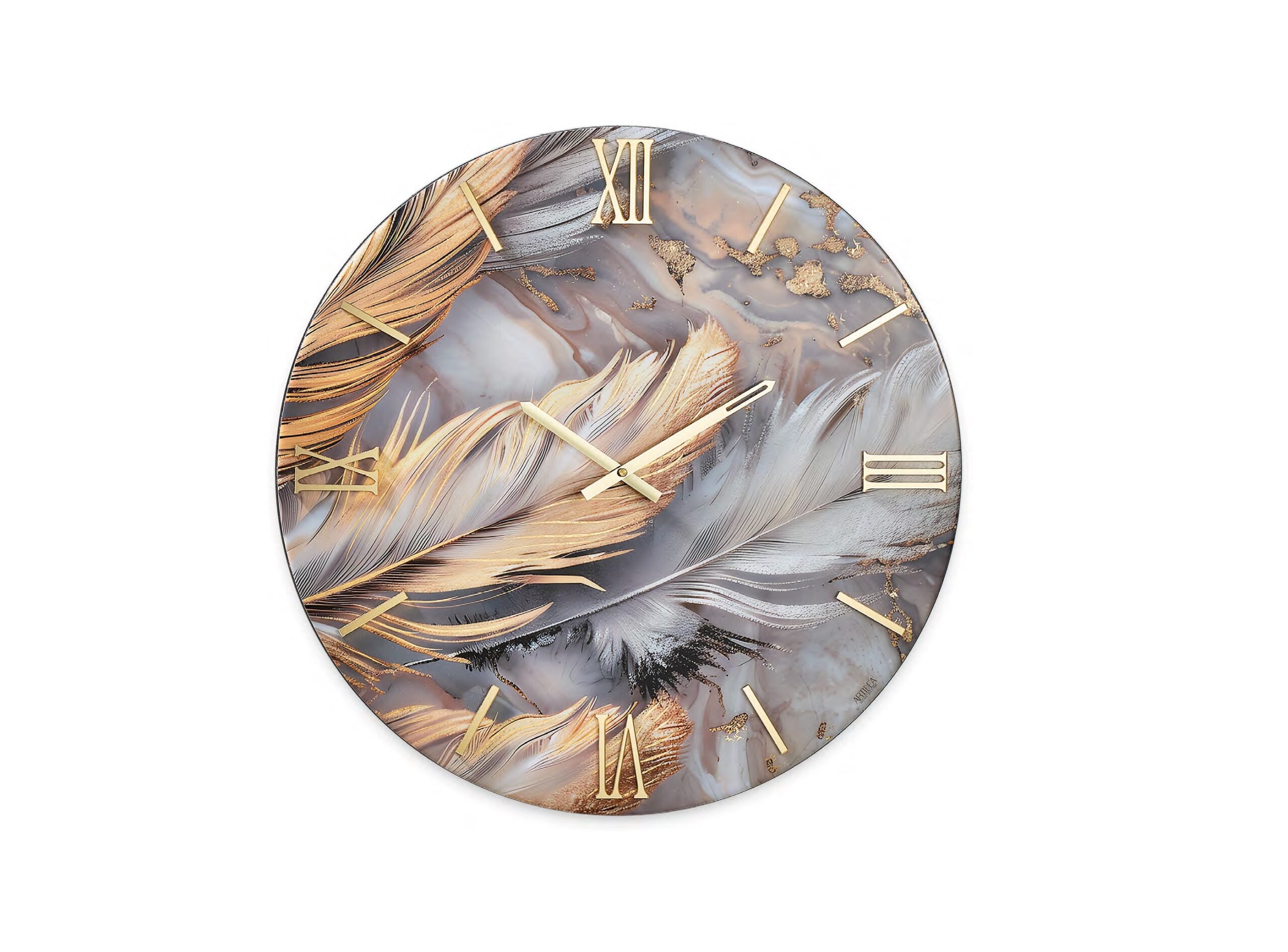 Orologio moderno con piume e numeri oro dec. PIUMA varie misure 40-60-80-100 cm