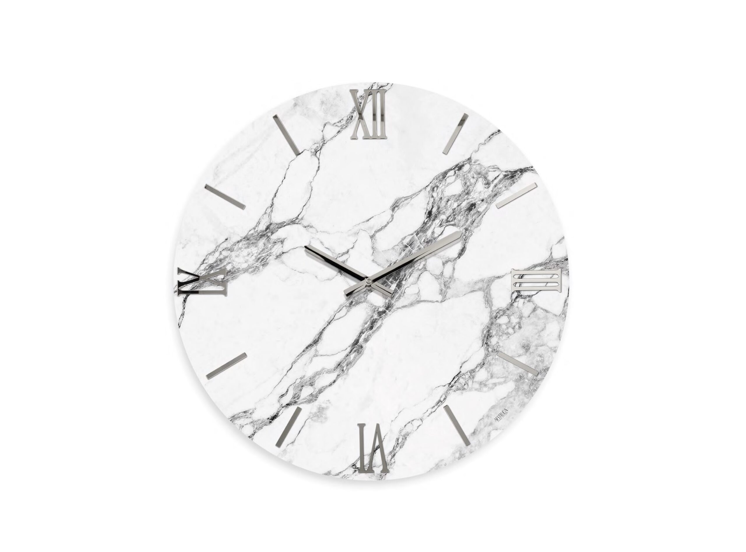 Orologio moderno effetto marmo e numeri argento dec. CARRARA varie misure 40-60-80-100 cm