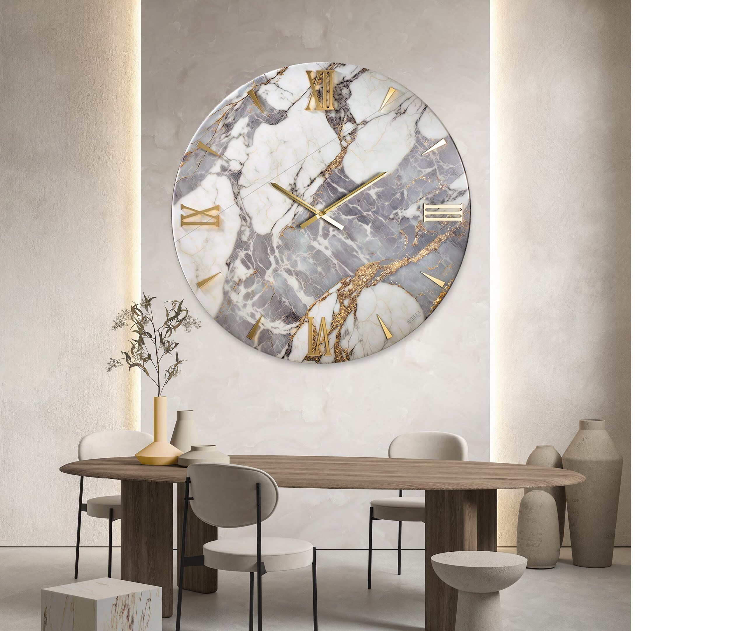 Orologio moderno effetto marmo grigio con numeri oro dec. CALA varie misure 40-60-80-100 cm