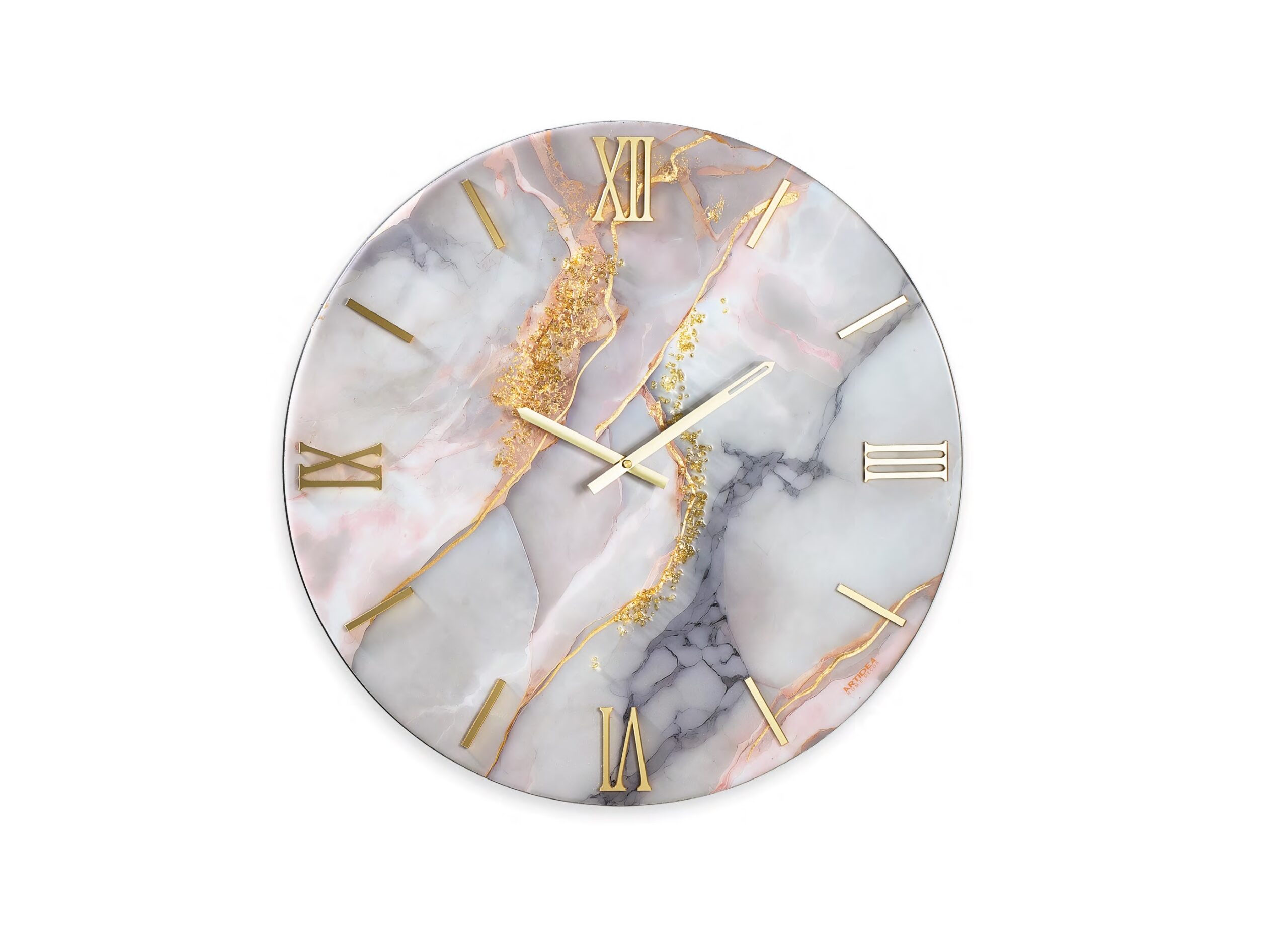 Orologio moderno effetto marmo rosa e grigio con numeri oro dec. CIPRIA varie misure 40-60-80-100 cm