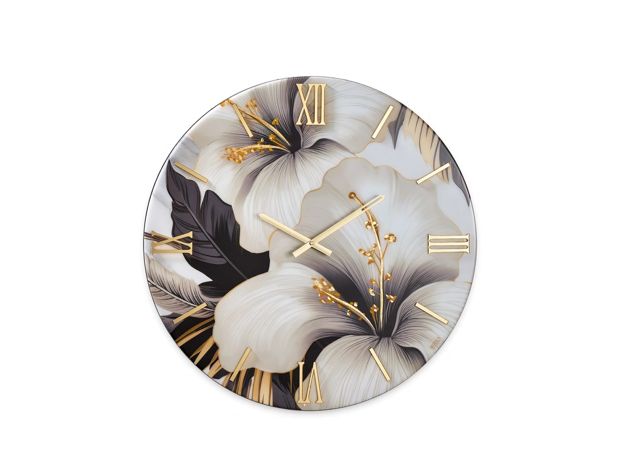Orologio moderno nero e oro con fiori bianchi numeri oro dec. TROPICANA varie misure 40-60-80-100 cm
