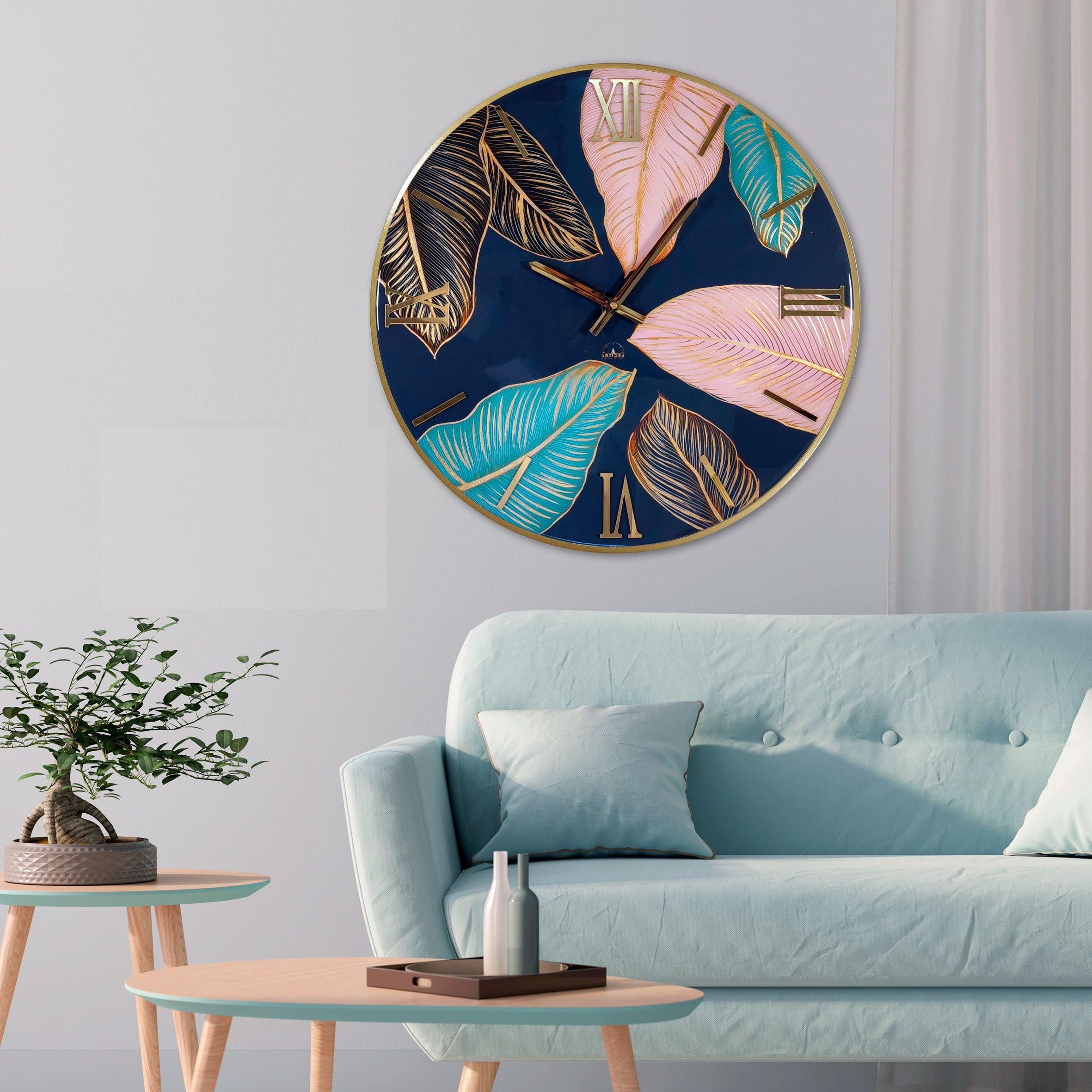 Orologio circolare con quadrante lucido, decorato a mano con foglia oro e numeri sovrapposti in Plex lucido con effetto specchio.