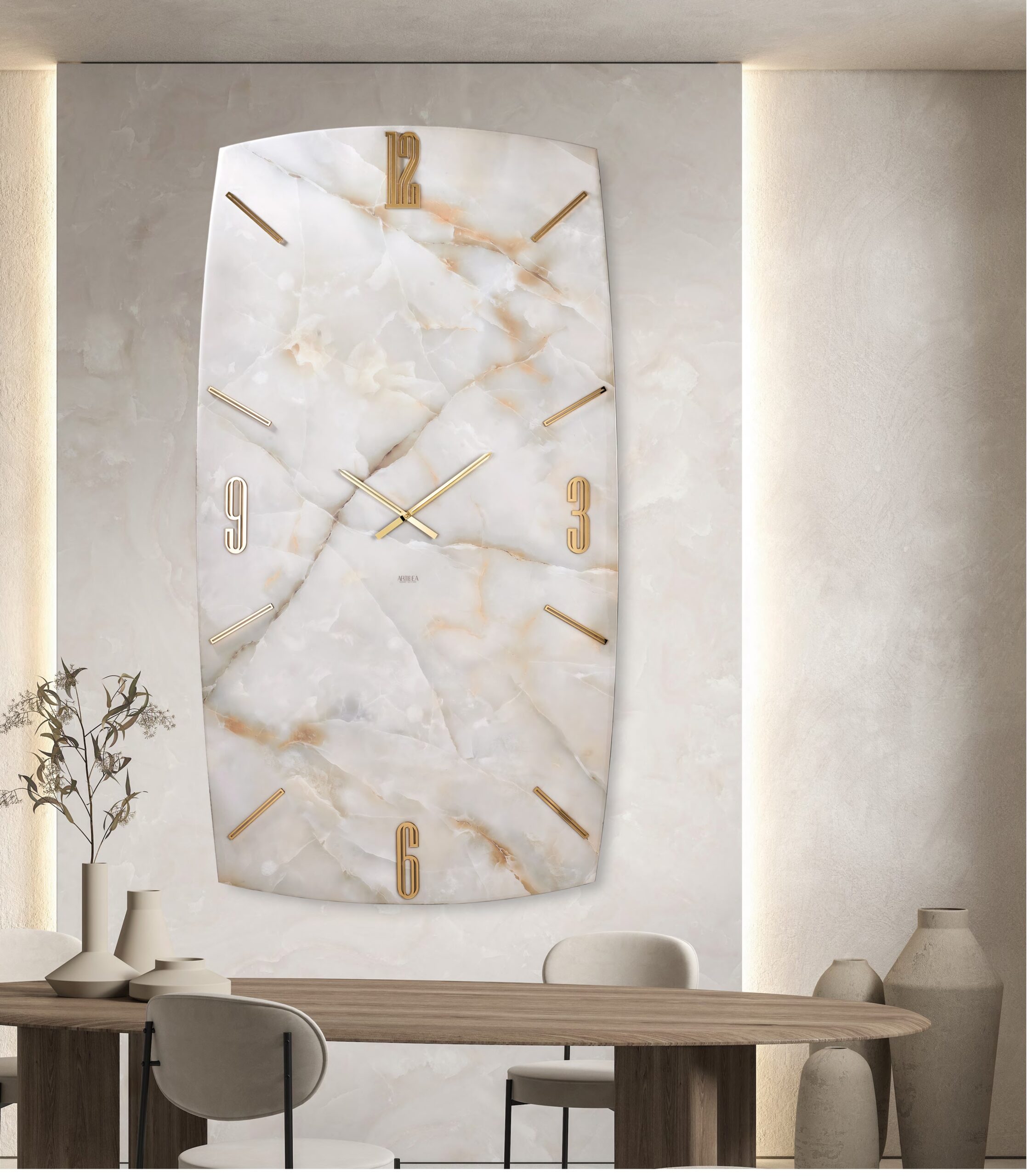Orologio moderno rettangolare effetto marmo bianco con numeri oro dec. MAESTOSO/3 mis. 80 x h 150 cm