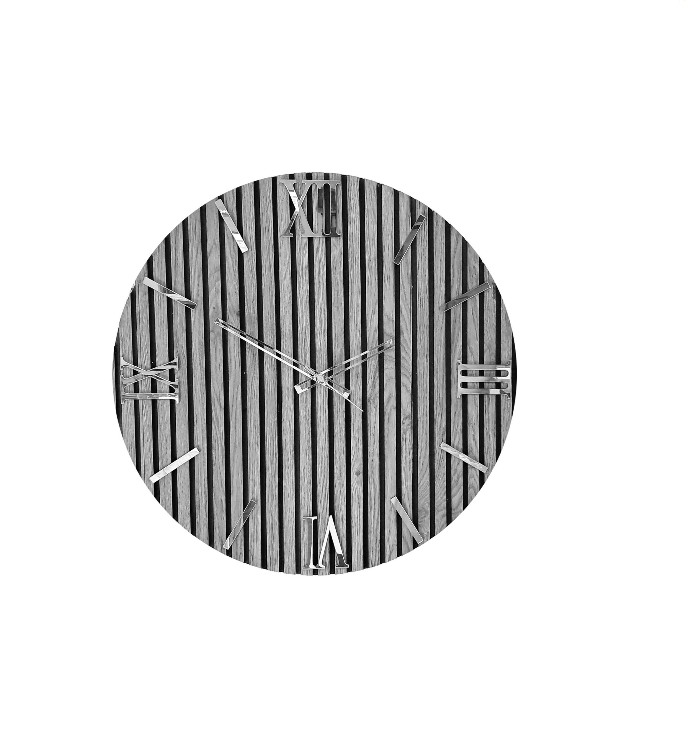 orologio moderno rotondo in legno cannettato grigio
