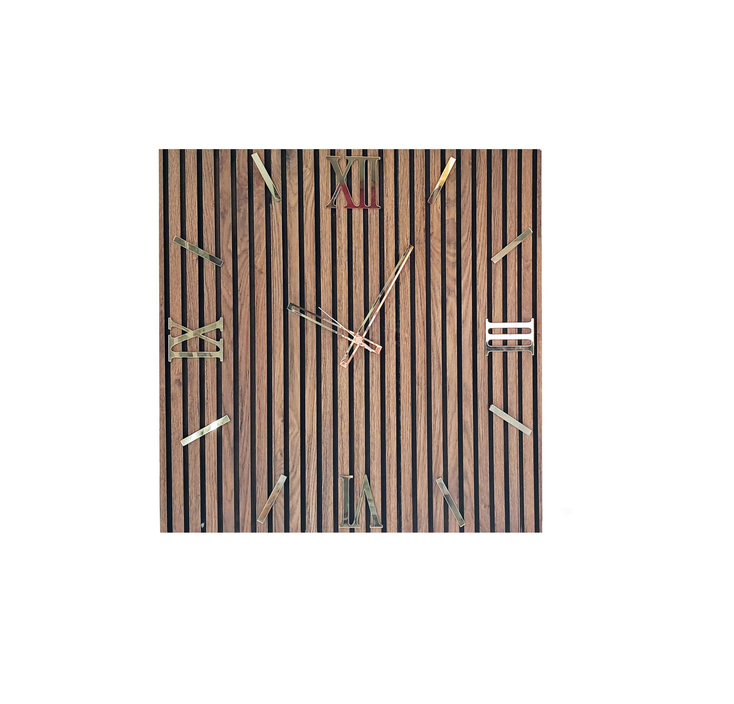 orologio moderno rquadrato in legno cannettato marrone