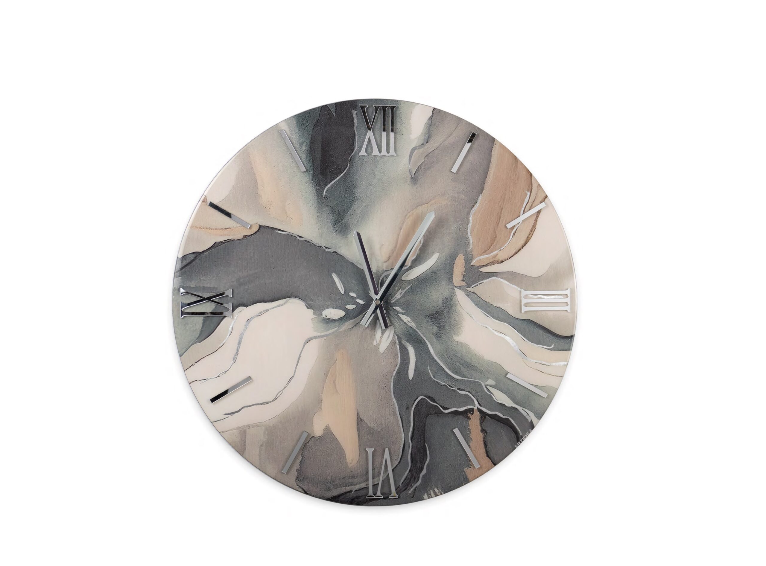 Orologio moderno tortora e grigio con numeri argento dec. MACCHIA varie misure 40-60-80-100 cm