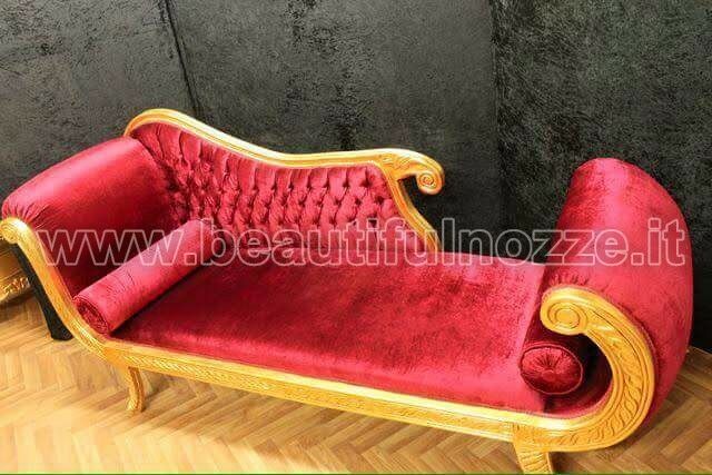 PANCA DORMEUSE IN LEGNO FOGLIA ORO E TESSUTO ROSSO CON CRISTALLI