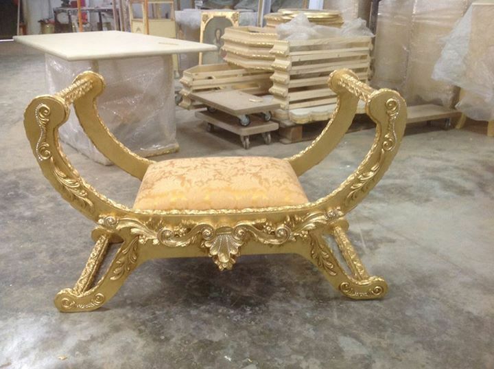PANCA IN LEGNO FOGLIA ORO CAMERA DA LETTO MOBILI ARREDO CASA SALOTTO SOGGIORNO