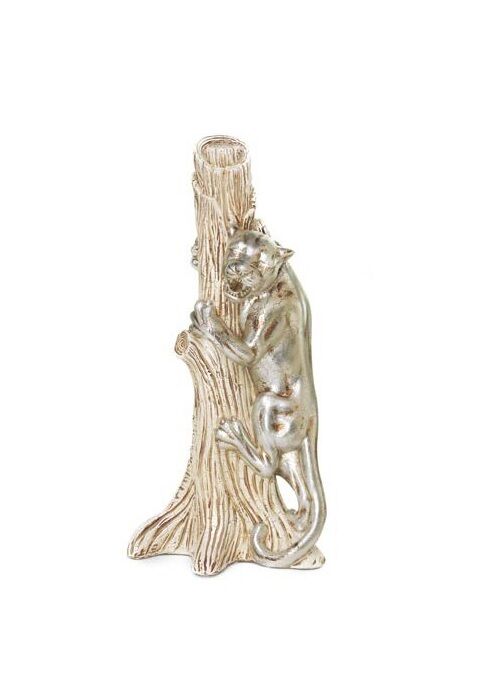 PANTERA ARRAMPICATA SU TRONCO VERTICALE IN CERAMICA DECORO ARGENTO ARREDO CASA