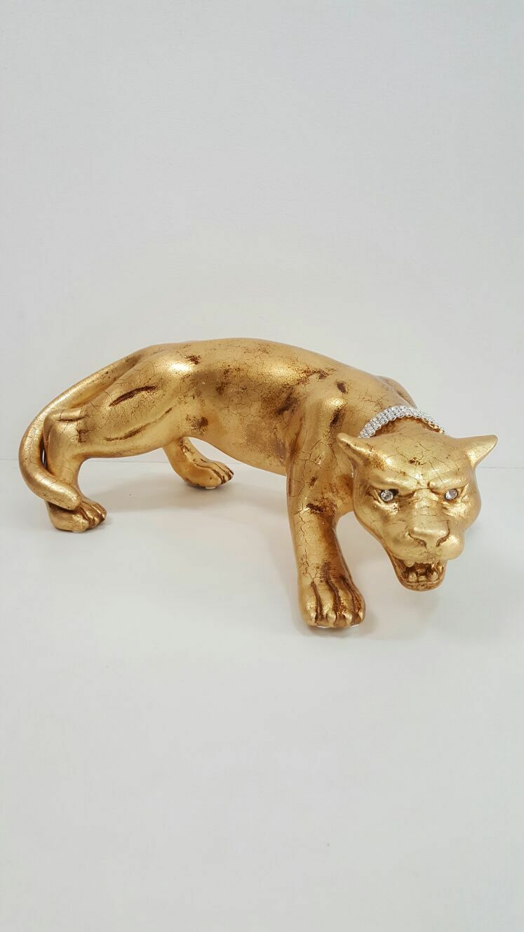 PANTERA CERAMICA FOGLIA ORO CON CRISTALLI SWAROVSKI SOPRAMMOBILE ANIMALI TIGRE
