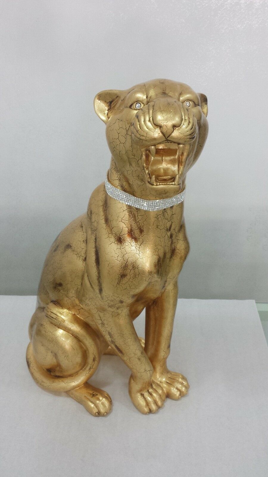 PANTERA GIGANTE CERAMICA ORO CRISTALLI ANIMALI ARREDO CASA SOGGIORNO SALOTTO