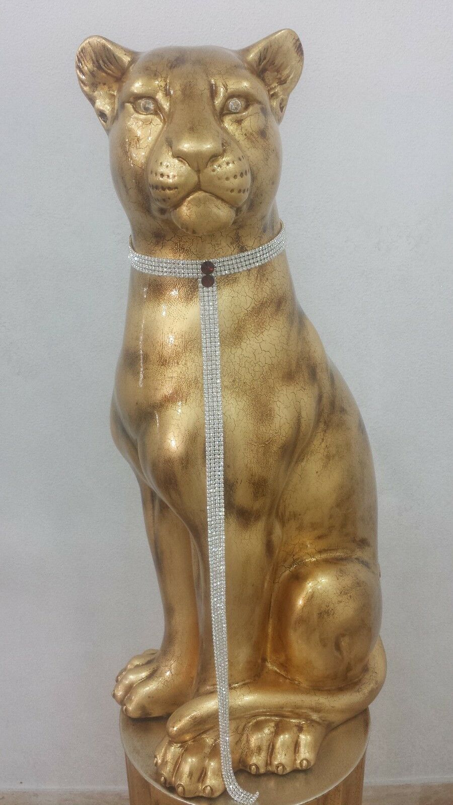 PANTERA GIGANTE CERAMICA ORO CRISTALLI ANIMALI ARREDO CASA SOGGIORNO SALOTTO