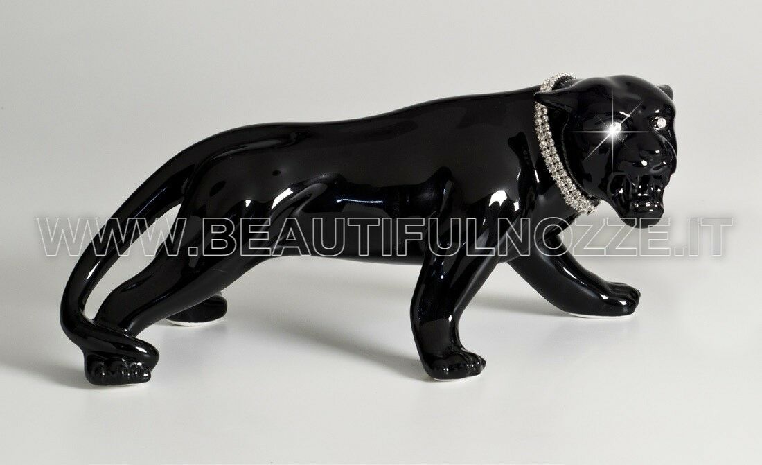 PANTERA IN AGGUATO IN CERAMICA NERA CON CRISTALLI SWAROVSKI ANIMALI