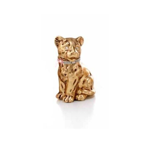 PANTERA SEDUTA CON BOCCA APERTA TIGRE IN CERAMICA FOGLIA ORO CON CRISTALLI