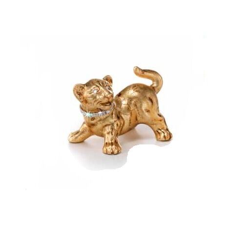 PANTERA SU 4 ZAMPE CODA IN ALTA TIGRE IN CERAMICA FOGLIA ORO CON CRISTALLI