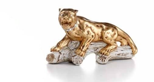 PANTERINA SDRAIATA SU TRONCO TIGRE IN CERAMICA FOGLIA ORO IN CRISTALLO