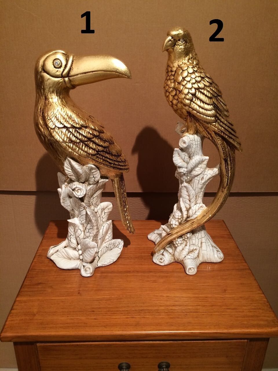PAPPAGALLO UCCELLI TUCANO IN CERAMICA AVORIO E FOGLIA ORO OCCHI IN CRISTALLO