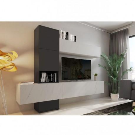 Parete attrezzata , moderna e di design, in finitura GRAFITE E MARMO CARRARA BIANCO