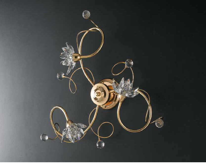 PLAFONIERA A 3 LUCI IN FUSIONE ORO CON GOCCIA E FIORI IN CRISTALLO