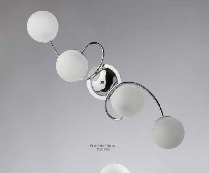 plafoniera moderna in ferro con sfere bianco latte 4 luci diam 80 cm LITTLE MOON