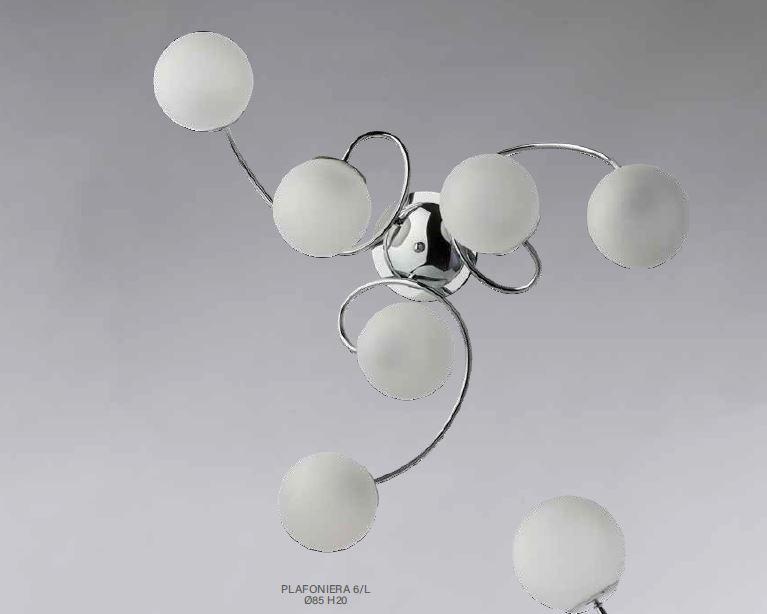 plafoniera moderna in ferro con sfere bianco latte 6 luci diam 85 cm LITTLE MOON