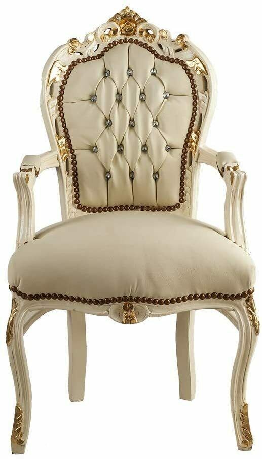 POLTRONA IN LEGNO AVORIO E ORO IN ECOPELLE AVORIO