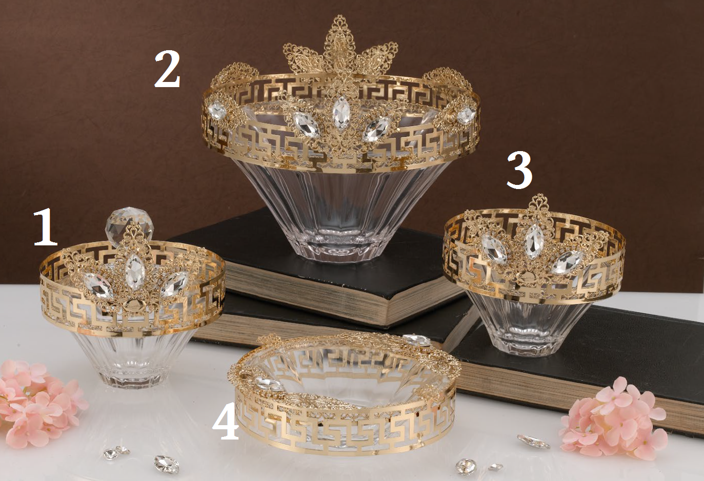 PORTA CIOCCOLATINI E CENTRO TAVOLA IN CRISTALLO DECORO BAGNO ORO