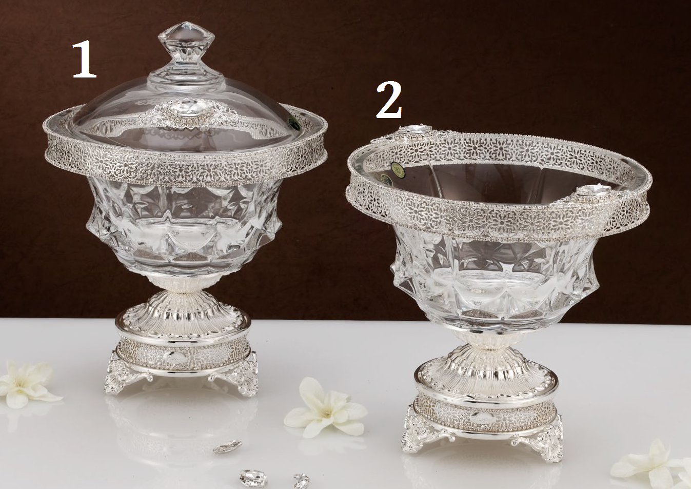 PORTA CIOCCOLATINI IN CRISTALLO CON DECORAZIONE BAGNO ARGENTO