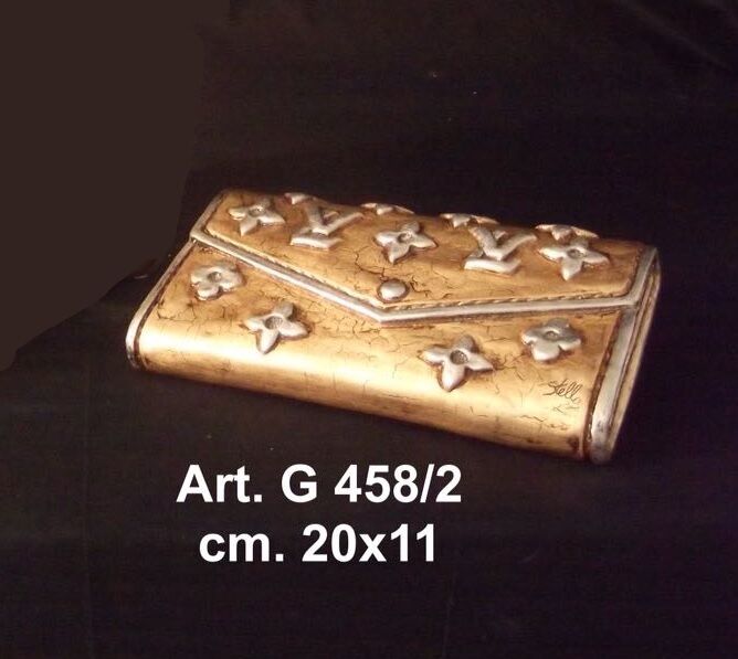 PORTAFOGLIO CON DECORI IN CERAMICA AVORIO FOGLIA ORO ARREDO CASA SOPRAMMOBILE