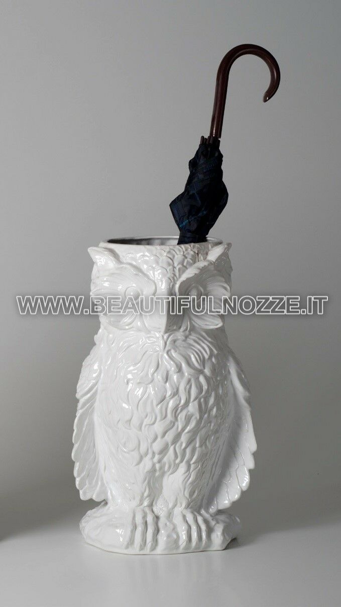 PORTAOMBRELLI GUFO IN CERAMICA BIANCA ARREDO CASA SOGGIORNO