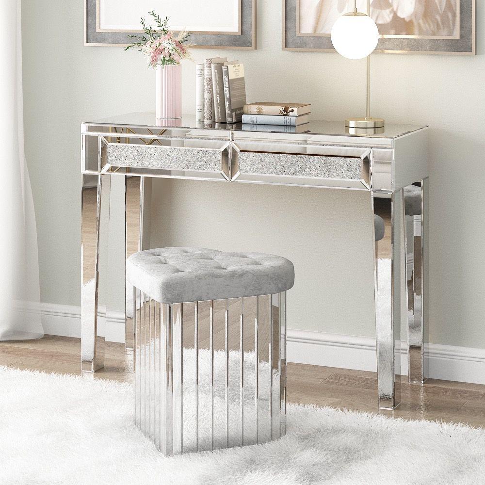 pouf in vetro specchiato con seduta imbottita in tessuto grigio CUORE mis. L 43x45cm