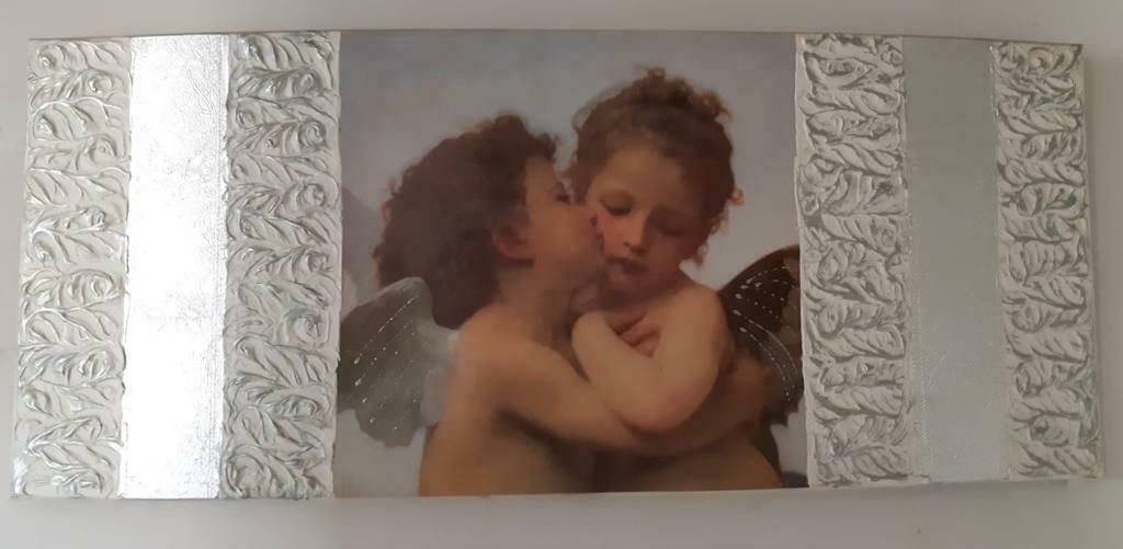 QUADRO CHERUBINI IN LEGNO BOMBATO 116×49 cm