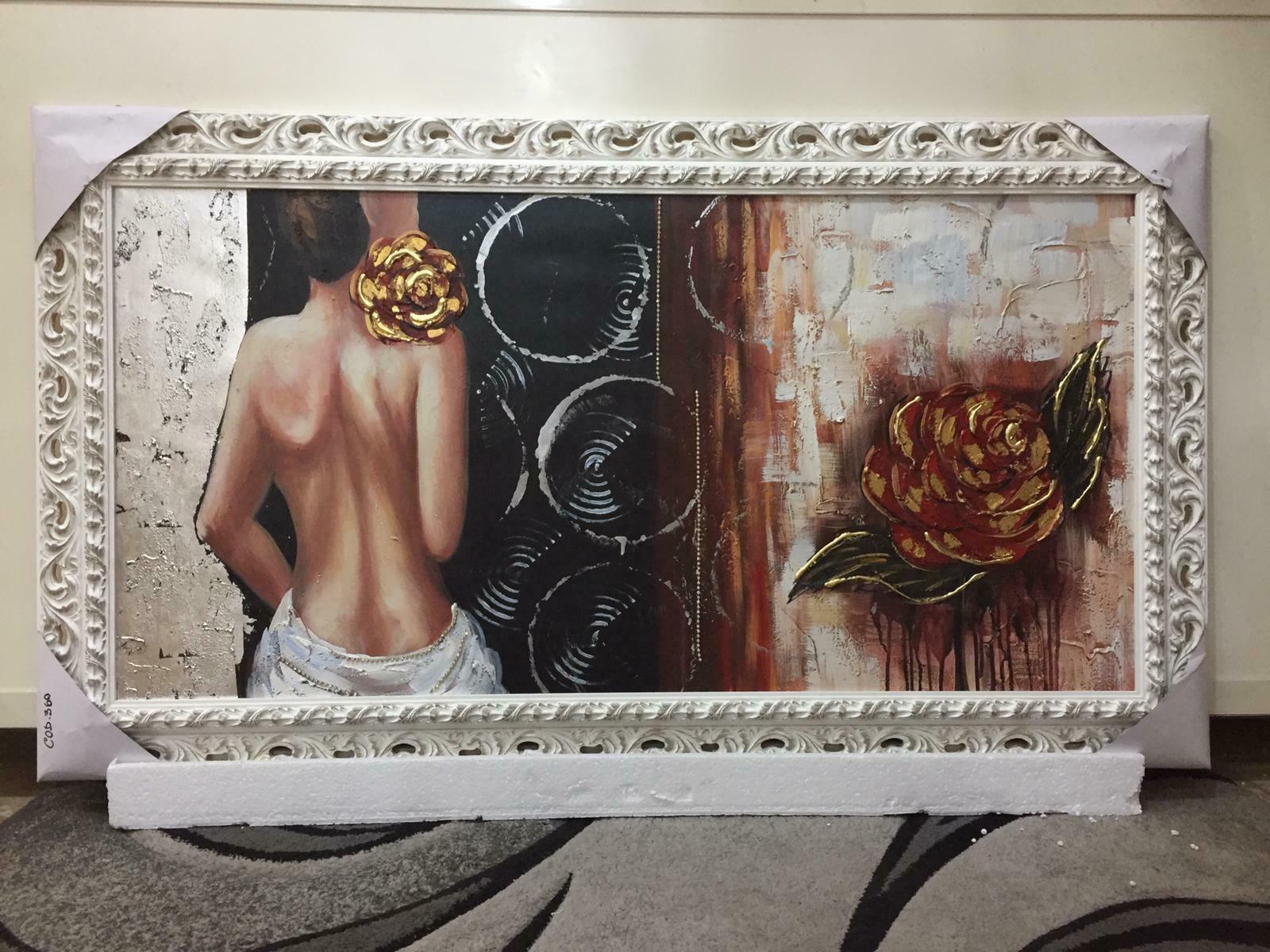 QUADRO DONNA DI SPALLE CON ROSA A RILIEVO BIANCO