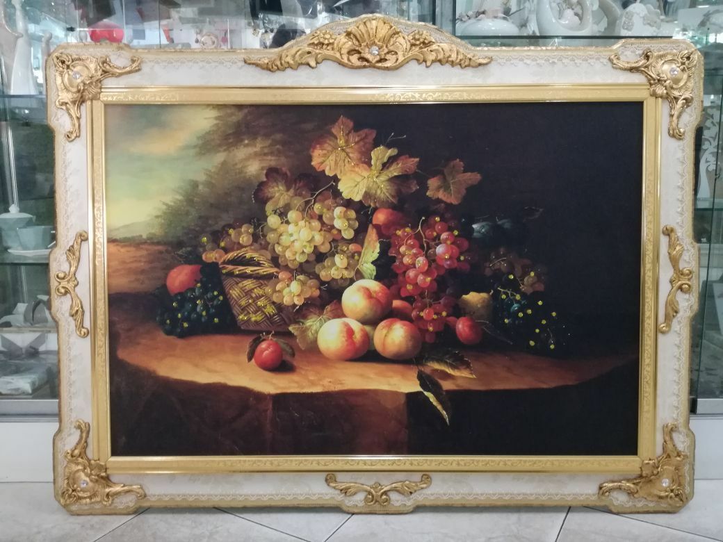 QUADRO IN LEGNO AVORIO E FOGLIA ORO CON CRISTALLI DECORO FRUTTA ARREDO CASA