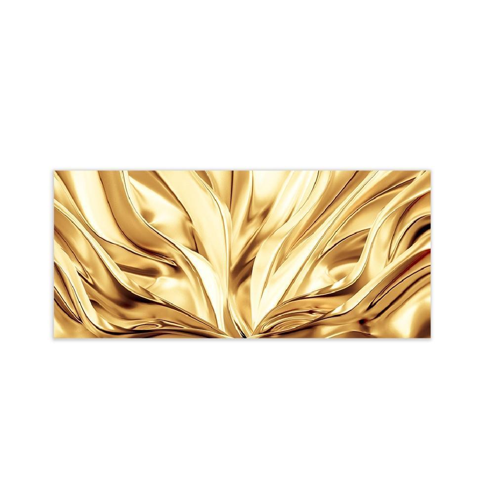 La stampa rappresenta una fantasia astratta dorata: la stampa con i suoi colori si adatta perfettamente ad ambienti dove prevale il nero e il dorato e il bianco. In ambienti moderni è ideale, soprattutto con pareti bianche o carta da zucchero. Il formato orizzontale è perfetto per arredare pareti con divani e madie.