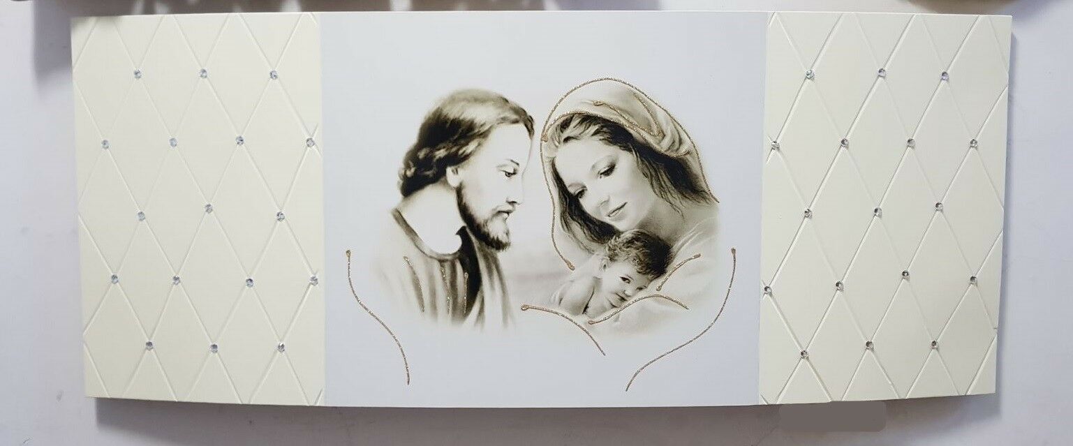 QUADRO MODERNO LEGNO CURVO SACRAFAMIGLIA DECORO CREMA EFFETTO PELLE E CRISTALLI