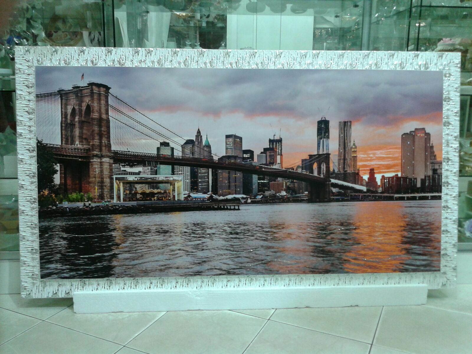 QUADRO MODERNO NEW YORK PONTE BROOKLYN CORNICE ARGENTO ARREDO CASA SALOTTO SALA