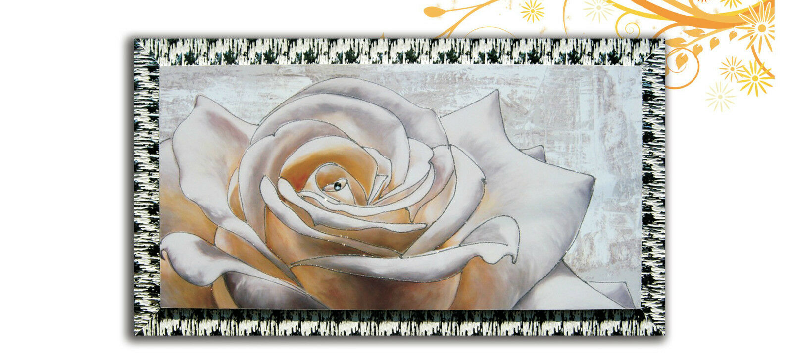 QUADRO MODERNO ROSA BIANCA CORNICE ARGENTO ARREDO CASA SALOTTO SALA 114×64 CM