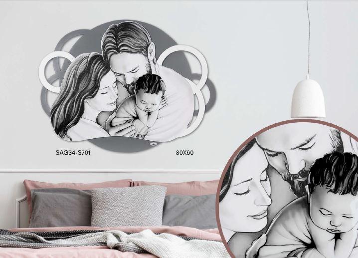 Quadro moderno sacra famiglia bianco e grigio